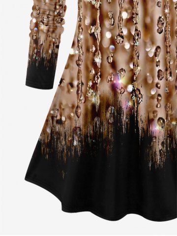Plus Size Glitter Sparkling Sequins Water Drop Print Ombre Long Sleeves T-shirt - Coffee - 1x