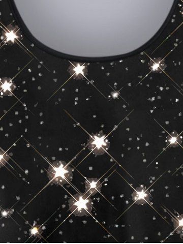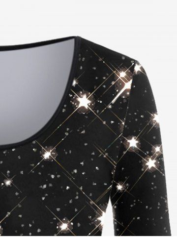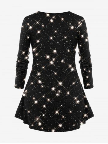 Plus Size Glitter Sparkling Stars Galaxy Print Long Sleeves T-shirt - Black - 5x