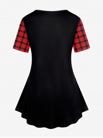 Plus Size Graphic Plaid Letter Cat Print Tee - Red - L | Us 12