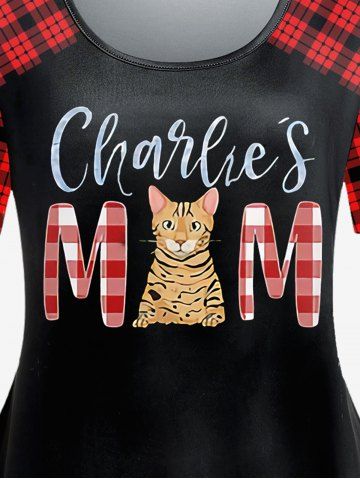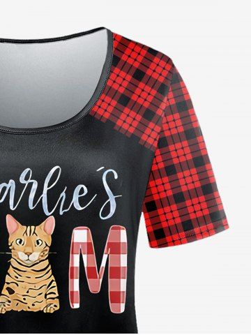 Graphic Tees > Plus Size Graphic Plaid Letter Cat Print Tee