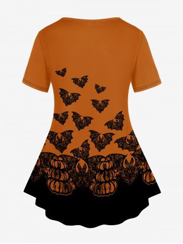 Graphic Tees > Plus Size Halloween Colorblock Pumpkin Bat Print T-shirt