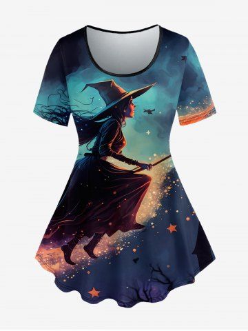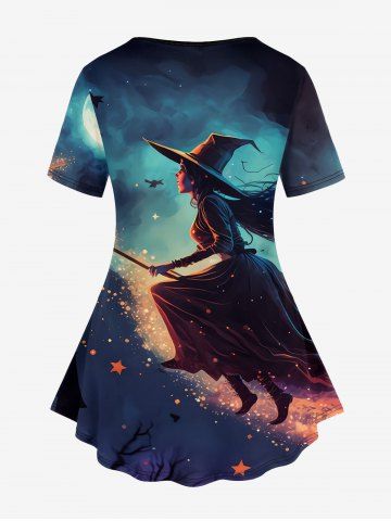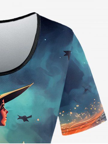 Graphic Tees > Plus Size Hat Girl Moon Tree House Glitter Print T-shirt
