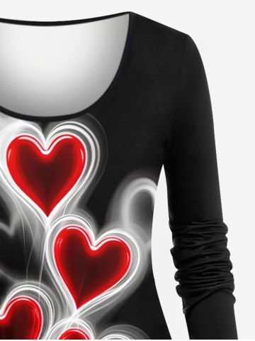 Plus Size Heart Smoke Balloons Print Valentines Long Sleeves T-shirt - Black - L