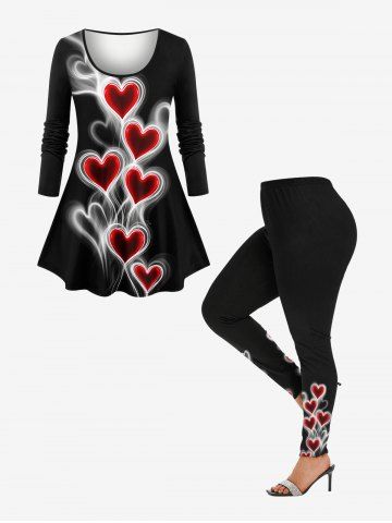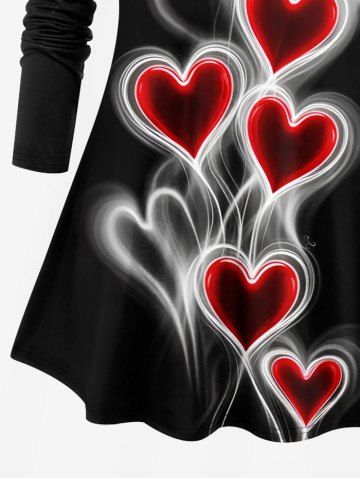 Plus Size Heart Smoke Balloons Print Valentines Long Sleeves T-shirt - Black - 2x
