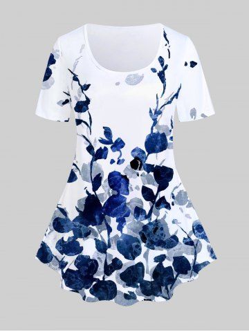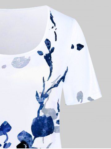Plus Size Ink Painting Printed Short Sleeves Tee - White - 5x | Us 30-32