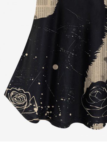 D*****a5Ink Painting Rose Flower Leaf Butterfly Cat Newspaper Print T-shirt and Flare Pants Plus Size Matching SetColor: LIGHT COFFEEI am completely happy about it and will have fun wearing it