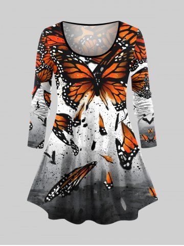 Graphic Tees > Plus Size Ink Painting Splatter Butterfly Print Long Sleeves T-shirt