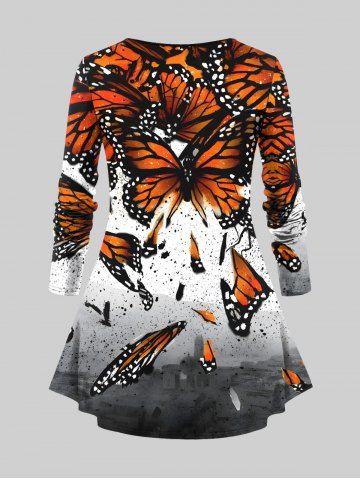 Plus Size Ink Painting Splatter Butterfly Print Long Sleeves T-shirt - Multi-a - 5x