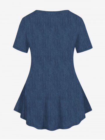 N*****K5Plus Size Lace Up Button Pocket Denim 3D Print T-shirtColor: DEEP BLUE Size: 5Xsehr schön. angenehm zu tragen.