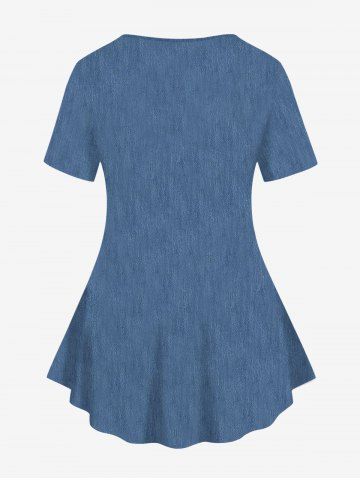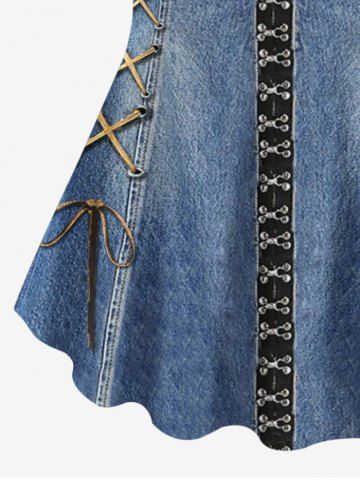 Plus Size Lace Up Grommets Buckles Denim 3D Print T-shirt - Blue Gray - 6x