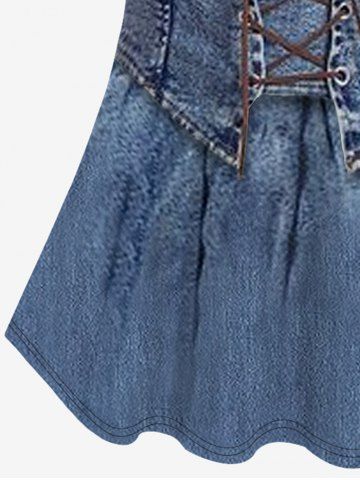 Graphic Tees > Plus Size Lace Up Ruched Corset Denim 3D Print Cold Shoulder T-shirt