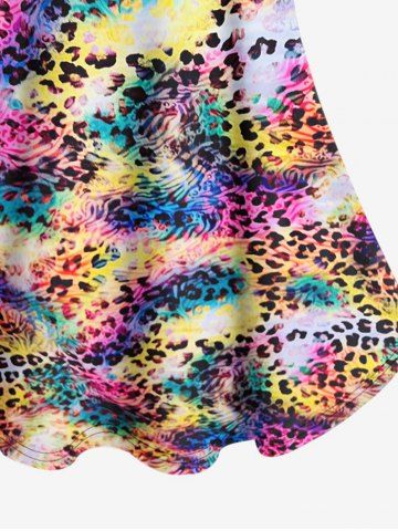 Plus Size Leopard Colorful Trippy Print Cold Shoulder T-shirt - Multi-a - 1x