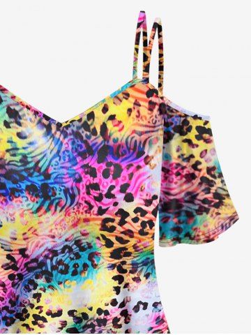 Plus Size Leopard Colorful Trippy Print Cold Shoulder T-shirt - Multi-a - 3x