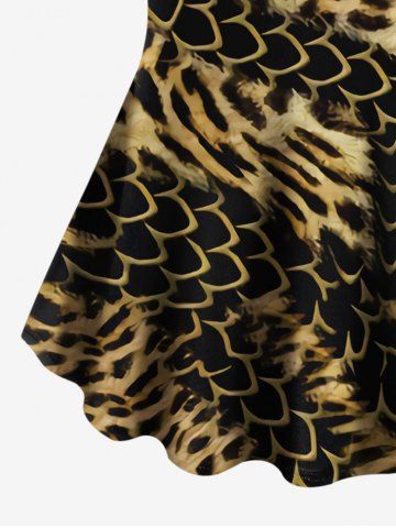 Plus Size Leopard Dragon Scale Print Short Sleeves T-shirt - Black - 1x