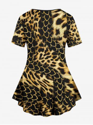 Plus Size Leopard Dragon Scale Print Short Sleeves T-shirt - Black - 6x