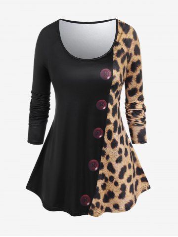 Graphic Tees > Plus Size Leopard Print Raglan Sleeve T-shirt