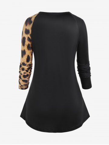 Plus Size Leopard Print Raglan Sleeve T-shirt - Black - 3x | Us 22-24