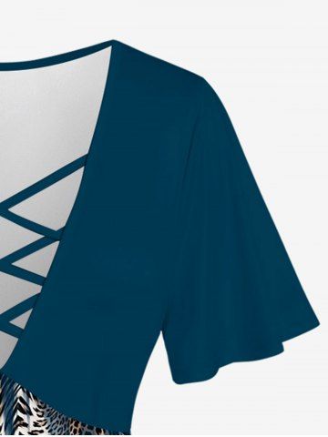 j*****z4Plus Size Leopard Printed Crisscross Short Sleeves Plunging TeeColor: DEEP BLUE Size: 1X | US 14-16Cute and comfy. I’ve always had issues with material and size being and issue. Not this time!