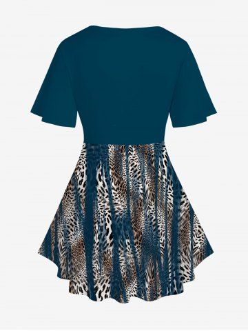 j*****z4Plus Size Leopard Printed Crisscross Short Sleeves Plunging TeeColor: DEEP BLUE Size: 1X | US 14-16Cute and comfy. I’ve always had issues with material and size being and issue. Not this time!