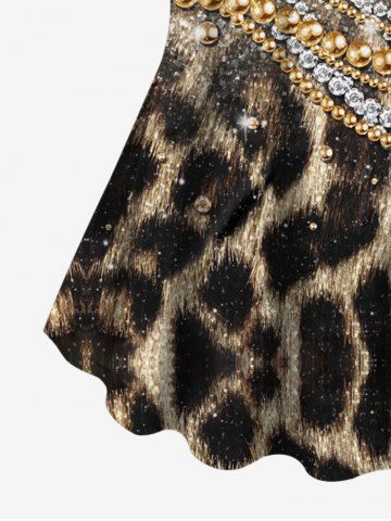 Plus Size Leopard Sparkling Sequin Glitter Bead Chains 3D Print T-shirt - Deep Coffee - 6x