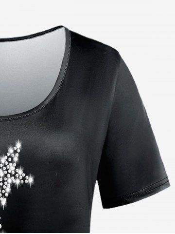 Plus Size Light Beam And Sparkling Star Print Short Sleeve Tee - Black - 5x | Us 30-32
