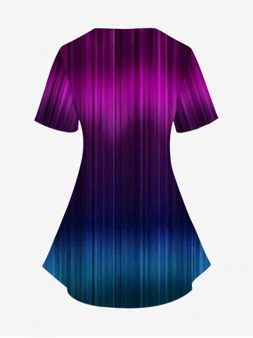 A*****a5Plus Size Light Beam Sparkling Pentagram Print Ombre Asymmetric 2 in 1 T-shirtColor: PURPLE Size: 6XBeautiful fabric and very soft and comfortable. Fits perfectly and I love it.