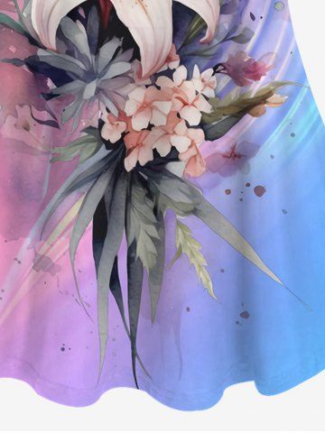 Graphic Tees > Plus Size Lily Flower Leaf Ombre Colorblock Print Cold Shoulder T-shirt