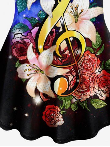 Plus Size Lily Rose Flower Music Symbol Galaxy Print T-shirt - Black - S