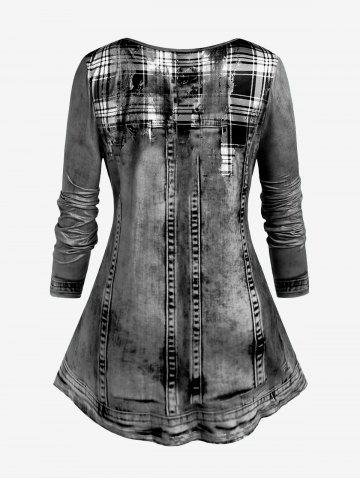 b*****643D Denim T-shirt and Plaid Skinny Jeggings Plus Size OutfitColor: LIGHT BLUElove it thank you
