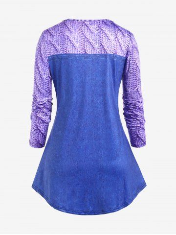 Plus Size Long Sleeve 3D Lace Up Denim Print T-shirt - Purple - 2x | Us 18-20