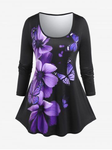 s*****15Plus Size Long Sleeve Flower Butterfly Print T-shirtColor: PURPLE Size: 5X | US 30-32I love the pattern on this shirt and the fact it matches my leggings I bought. They are true to size and fit great