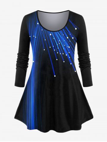 Plus Size Long Sleeve Light Beam Print T-shirt