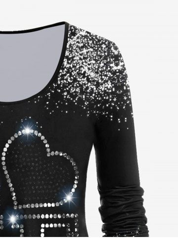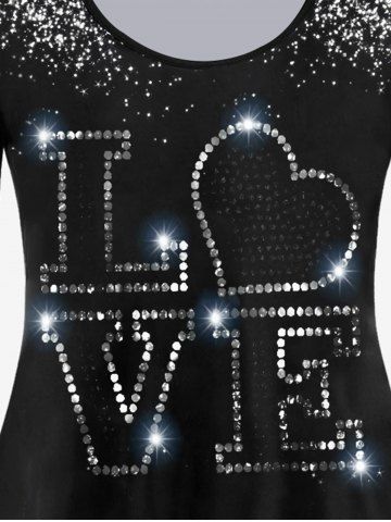 Plus Size Long Sleeve Sparkle LOVE Print T-shirt - Black - 4x | Us 26-28
