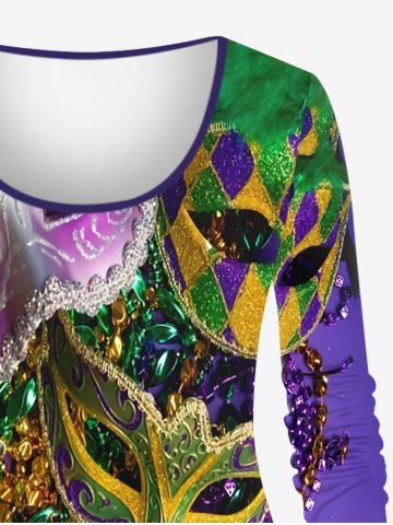 Plus Size Mask Chains Magic Wand Colorblock Sparkling Sequin Glitter 3D Print T-shirt - Purple - M