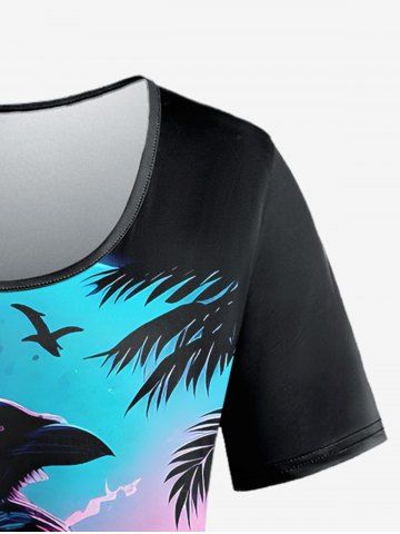 Plus Size Moon Cloud Bird Tree Print T-shirt - Black - Xs