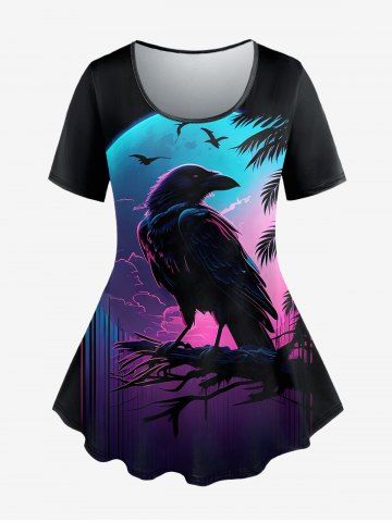 Graphic Tees > Plus Size Moon Cloud Bird Tree Print T-shirt
