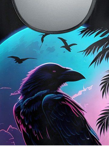 Plus Size Moon Cloud Bird Tree Print T-shirt - Black - 6x