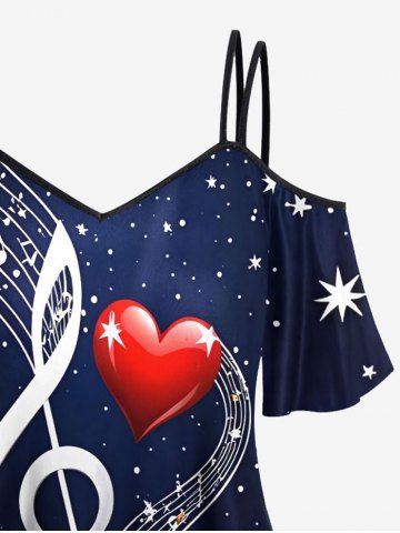Graphic Tees > Plus Size Music Symbol Heart Star Galaxy Print Cold Shoulder Cami T-shirt