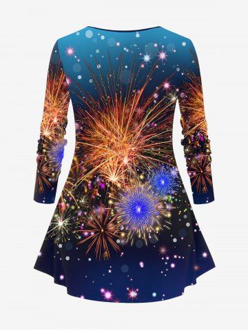 Plus Size New Year Party Fireworks Galaxy Star Glitter Sparkling Sequin 3D Print Long Sleeve T-shirt - Deep Blue - 1x