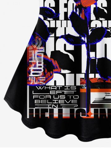 Graphic Tees > Plus Size Newspapaer Typesetting Rose Flower Letters Print T-shirt