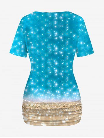 Plus Size Ocean Beach Colorblock Glitter Sparkling Sequin 3D Print Ruched 2 In 1 T-shirt - Blue - 6x