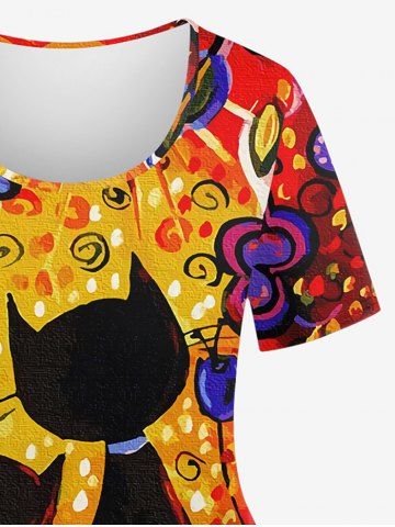 Graphic Tees > Plus Size Oil Painting Cats Flowers Colorblock Print T-shirt
