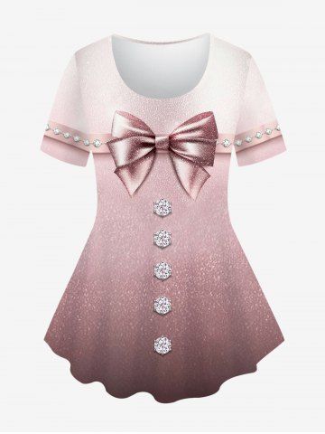 Plus Size Ombre Bowknot Diamond Glitter 3D Print T-shirt - Light Pink - 3x