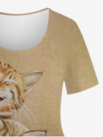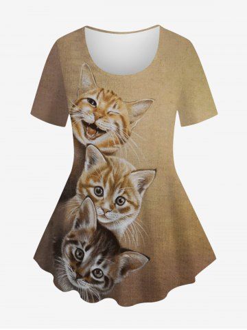 Plus Size Ombre Colorblock Cats 3D Print Crew Neck T-shirt - Coffee - M