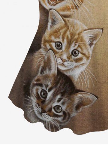 Plus Size Ombre Colorblock Cats 3D Print Crew Neck T-shirt - Coffee - 5x