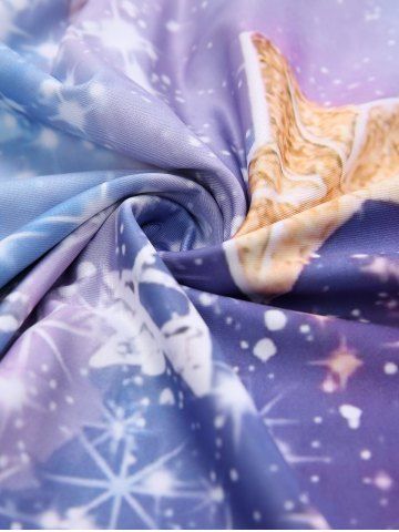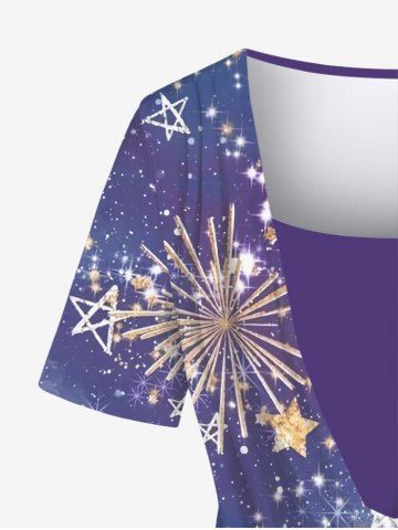 r*****35Plus Size Ombre Colorblock Galaxy Stars Sparkling Sequin Glitter 3D Print Ruched Plunge Neckline 2 In 1 T-shirtColor: PURPLE Size: 1Xthe shirt is bright but I really like it