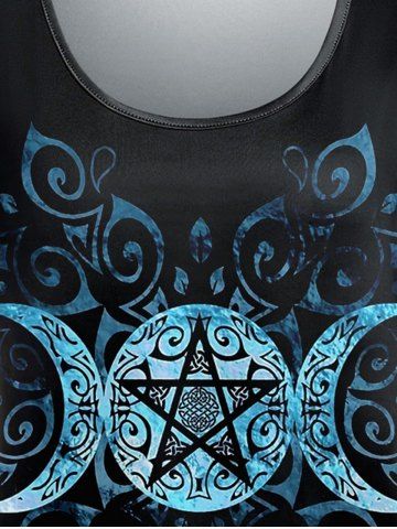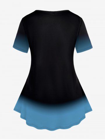 Plus Size Ombre Colorblock Moon Star Floral Figure Print T-shirt - Black - 1x