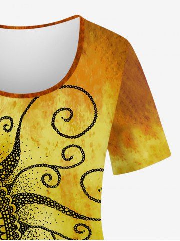 Plus Size Ombre Colorblock Paisley Sunflower Graphic Print T-shirt - Orange - L