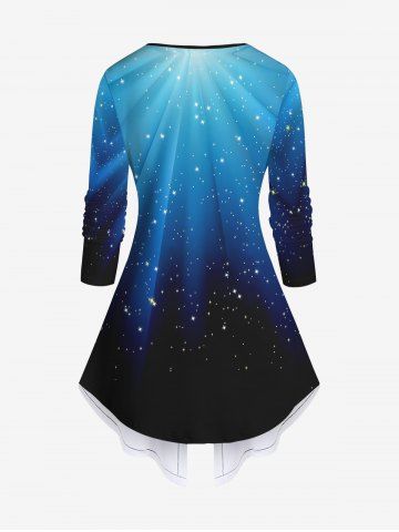 Plus Size Ombre Colorblock Rose Flower Butterfly Glitter Sparkling Sequin 3D Print 2 In 1 T-shirt - Blue - Xs