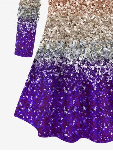 Plus Size Ombre Colorblock Sparkling Sequin Glitter 3D Print Long Sleeve T-shirt - Multi-a - M